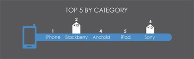 על פי המדד שלהם המותג בלאקברי עבר למקום ה2 זז 13 מקומות משנה שעברה בקטגוריית מוצרי צריכה אלקטרוניים, וגם נמצא במקום ה-2 אחרי האייפון שנמצא במקום ה-1 כבר שלוש שנים מאז שהסקר התחיל.